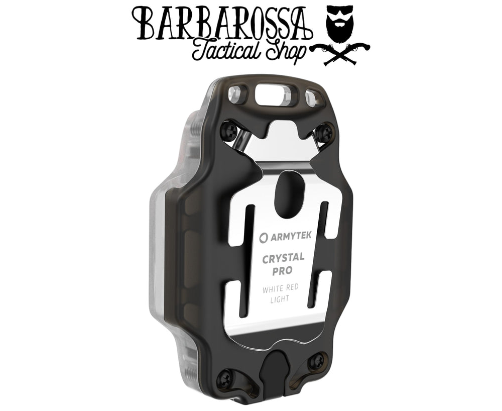 Crystal Pro è dotata di una clip in acciaio per il fissaggio a vestiti, cintura o spallaccio dello zaino.