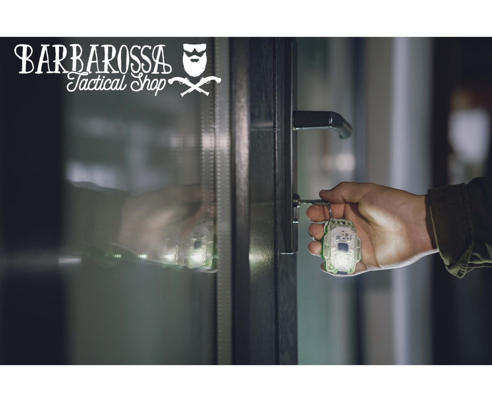 Corpo leggero e compatto, Cordino in paracord, possibilità di agganciarlo a borsa, tasca, tracolla o berretto tramite clip.