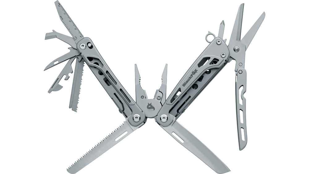 Il Black Fox Fortitude Multitool (mod. BF‑206) rappresenta l’alleato indispensabile per ogni appassionato di EDC, outdoor e avventura. Con 17 utensili integrati e una struttura in acciaio inossidabile 440, questo multi-tool garantisce resistenza, versatilità e prontezza in qualsiasi situazione.