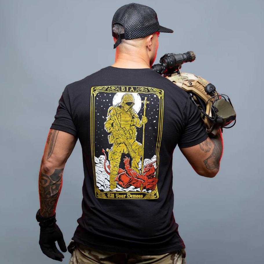 La Brothers in Arms Demons Black è una t-shirt pensata per chi ama lo stile militare e l’estetica tattica. Con una grafica “Demons” in versione full black, questa maglia è l’ideale per softgunners, operatori e appassionati di abbigliamento tecnico dal look aggressivo e moderno.