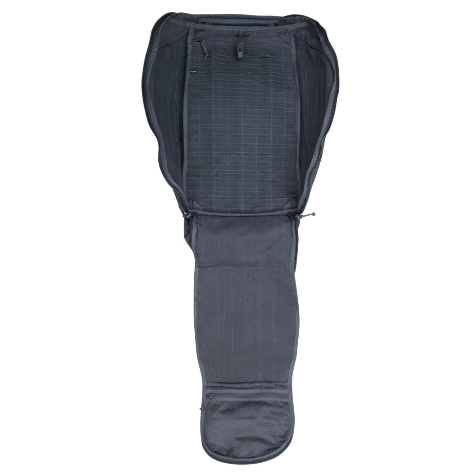 Il design a clamshell offre apertura totale, con doppia tasca superiore (una imbottita per occhiali) e pannelli MOLLE esterni/interni compatibili con i pannelli Spitfire®. Tasche laterali elastiche ospitano borracce da 1 l.
