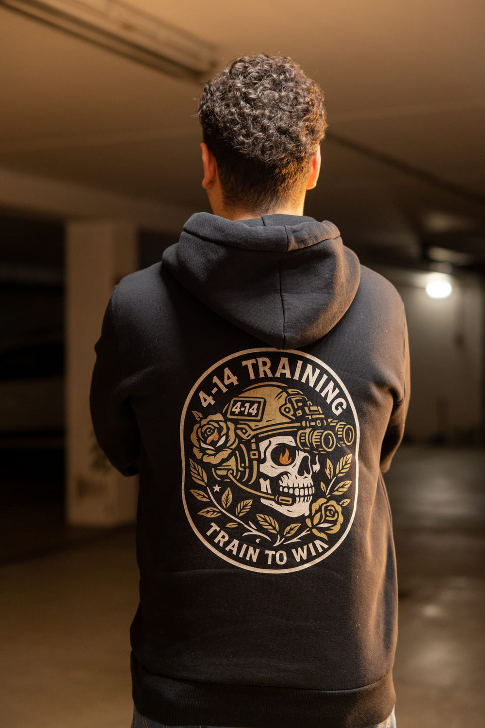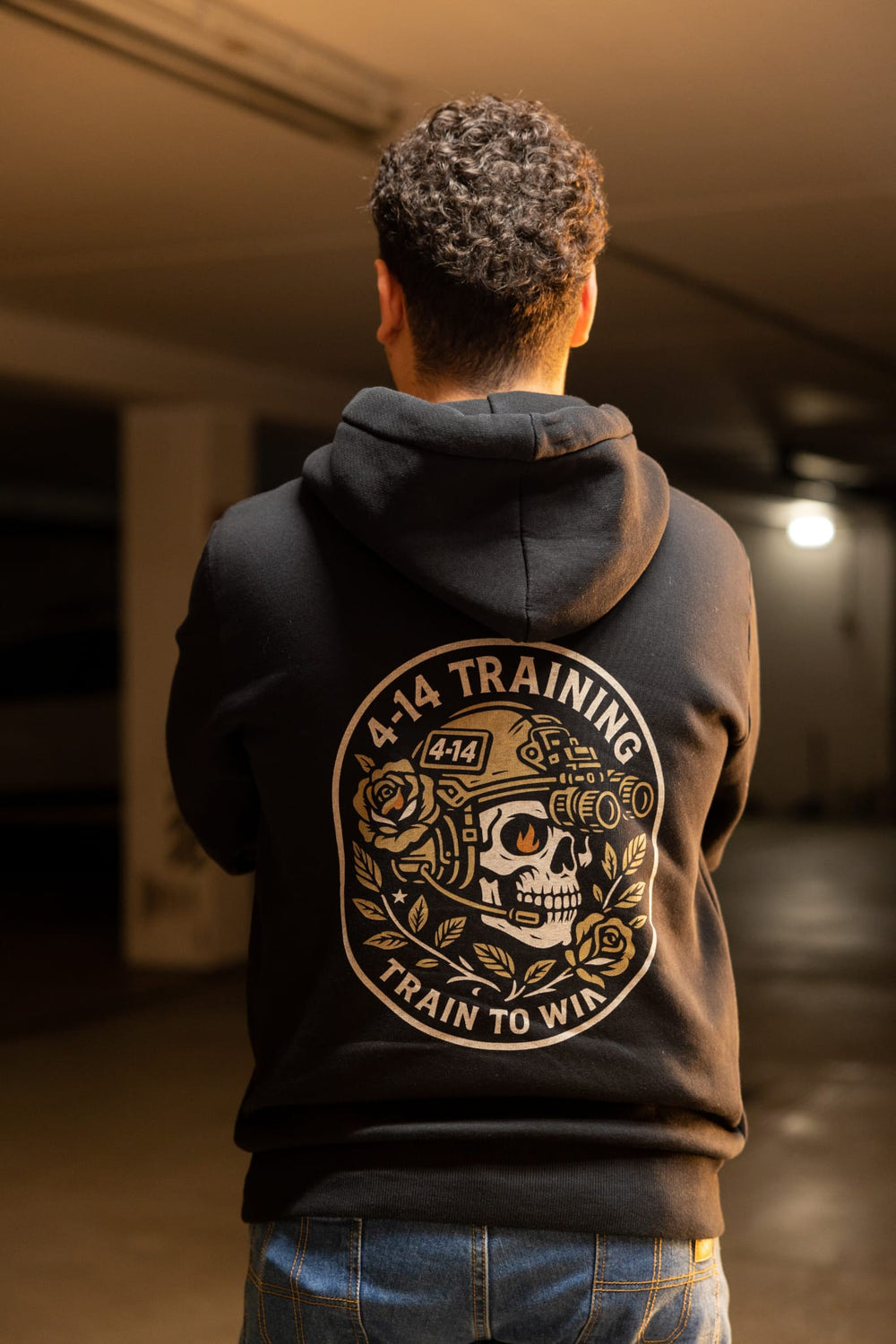 Il design con cappuccio offre praticità e protezione, mentre la grafica esclusiva 4-14 Training sul retro – con dettagli precisi e un look deciso – rispecchia una mentalità orientata alla disciplina e alla vittoria.