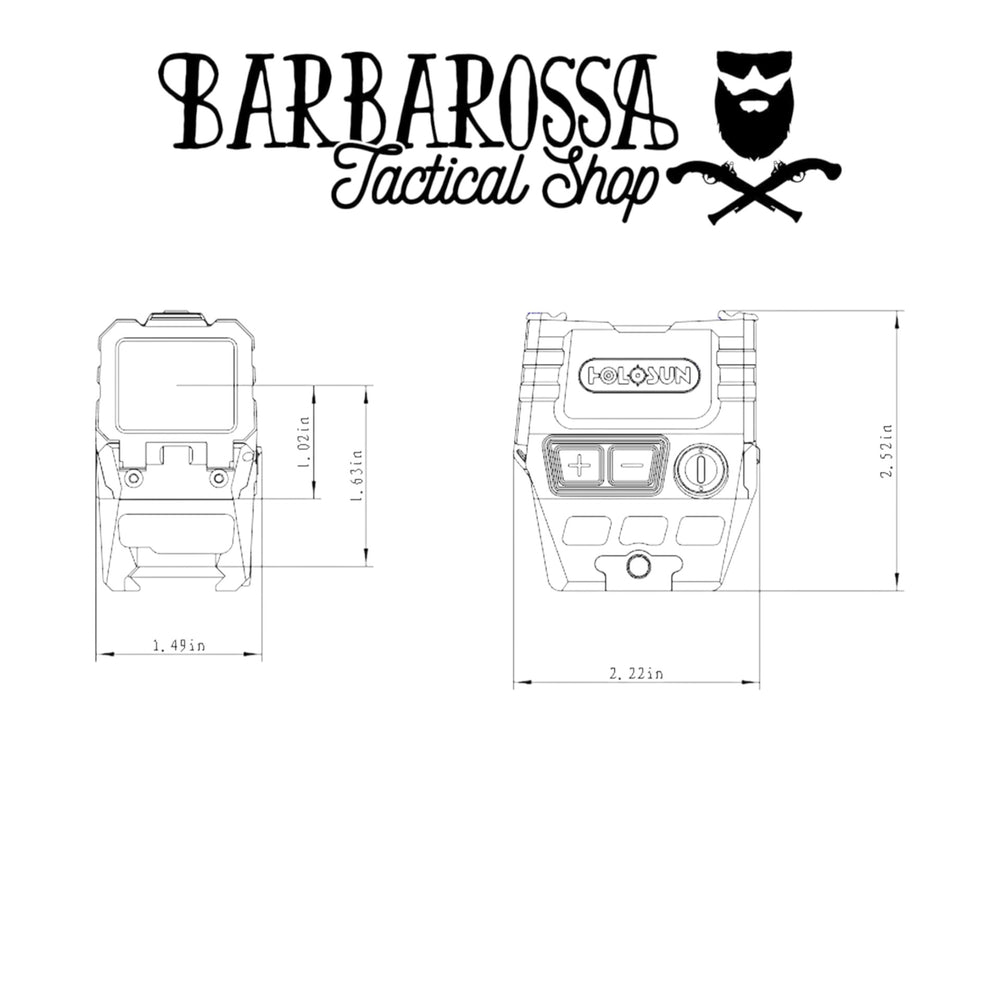 AEMS features include glass flip-down lens covers, Holosun's MRS (Multi-Reticle System) with a precision 2MOA dot inside a 65MOA circle, Solar Failsafe, and Shake Awake technology. A side mounted battery trays houses a 2032 battery which provides up to 50k hour battery life. Holosun's Red Super LED provides 12 intensity settings, 4 of which are night vision compatible.