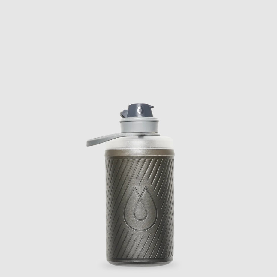 Flexible bottles get an upgrade. The Flux is shaped like a hard bottle, compresses like a softflask and reduces weight by 50%. Featuring a dust cover and twist spout for handy hydration, plus a handle to keep hydration secure in your hand or on your backpack. The Flux stands up like a hard bottle, but when you finish your drink, this bottle folds down into a pocket size.