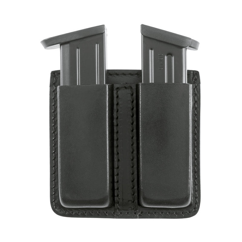 Il design aperto consente l’inserimento e l’estrazione rapida di due caricatori Glock. La ritenzione passiva è garantita dalla sagomatura della vera pelle rigida, che trattiene i caricatori saldamente senza necessità di chiusure meccaniche. Un vantaggio chiave per chi ha bisogno di tempi di reazione immediati.