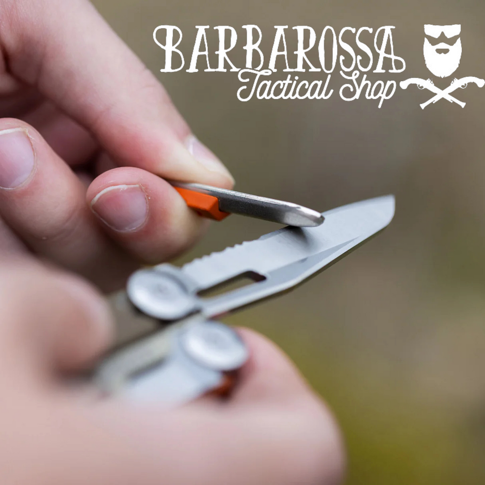 Signal, il migliore amico degli avventurieri, nei suoi compatti 11 cm propone 19 attrezzi per accompagnarti nelle tue uscite in montagna o durante il campeggio. Rifugiati nella natura in totale tranquillità, grazie ai suoi strumenti per affrontare ogni situazione: martello, acciarino, lama combinata in acciaio 420HC, fischietto di emergenza e affilatore, tra gli altri. Rivestimento DLC nero per migliorare l'attritto e ridurre l'usura; opzione in Cerakote® (Coyote Tan, Aqua, Crimson, Grey e Cobalt) per una maggiore robustezza e resistenza alla corrosione.