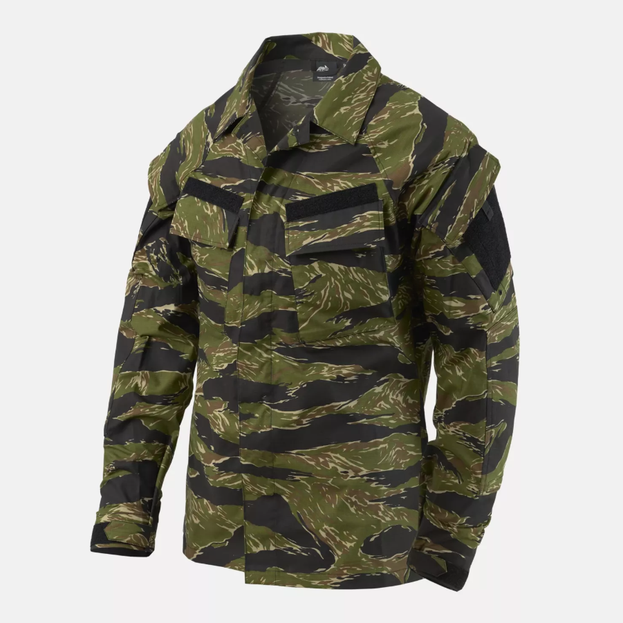 Reinforced, profiled elbows with internal low-profile protective pad pockets protect the user's arms during prone or crawl shooting.