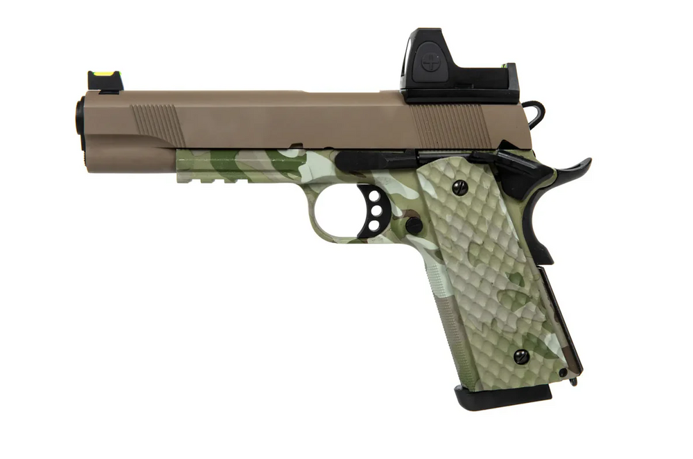 | Included | (x1) RAVEN MEU Replica (x1) RAVEN MEU Series 21R STD GAS Magazine (x1) Manual (x1) Parts Diagram (x1) Spare GAS Nozzle (x1) Spare O-Ring Set (x1) CO2 Nozzle (x1) CO2 Spring (x1) Bushing Removal Tool (x1) RAVEN PVC Patch |