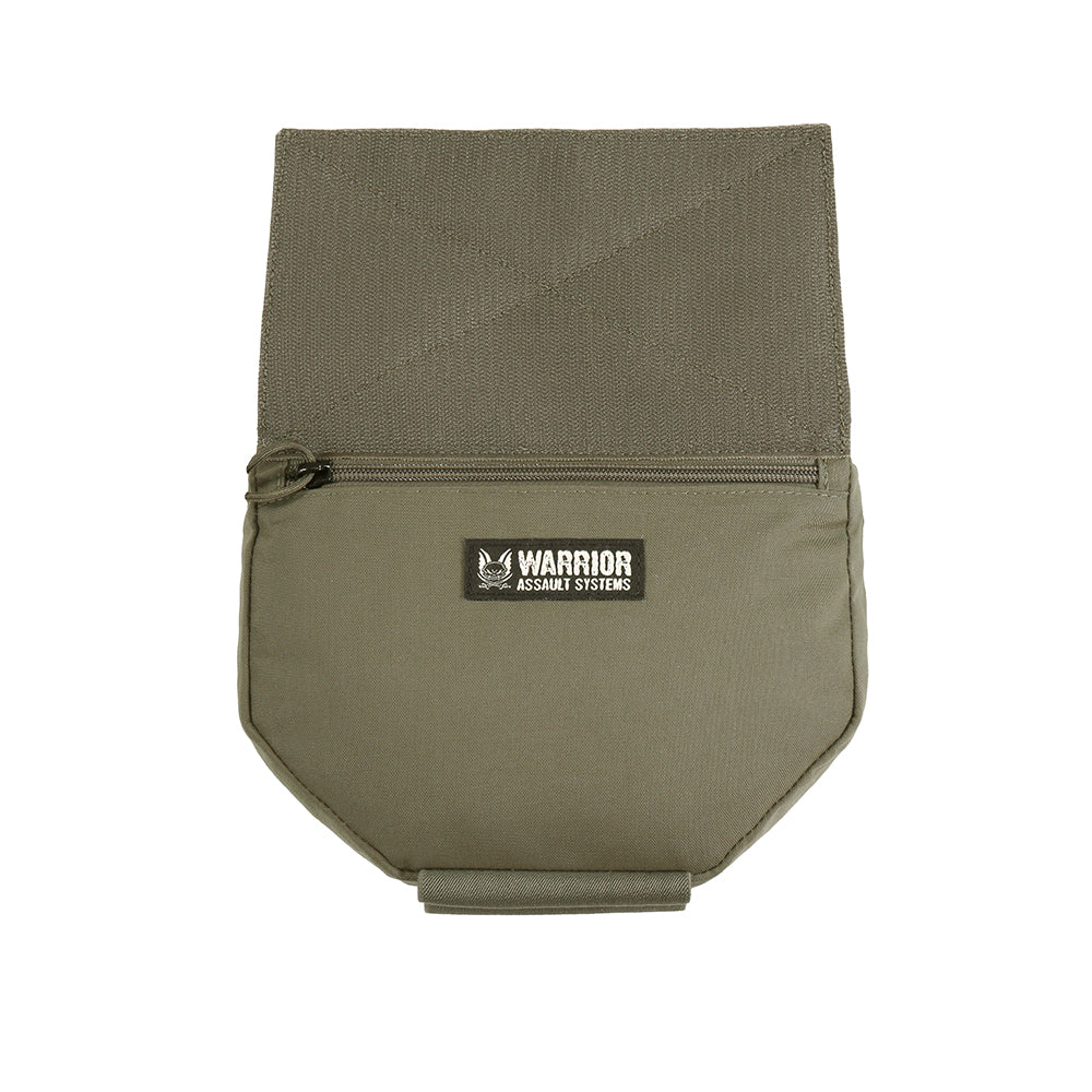 Warriors Drop Down Velcro Utility Pouch hangs under the front flap of most armor carriers and attaches quickly and securely via Velcro. Ideal for use with Warriors DCS, RPC and PCR Chest rig.