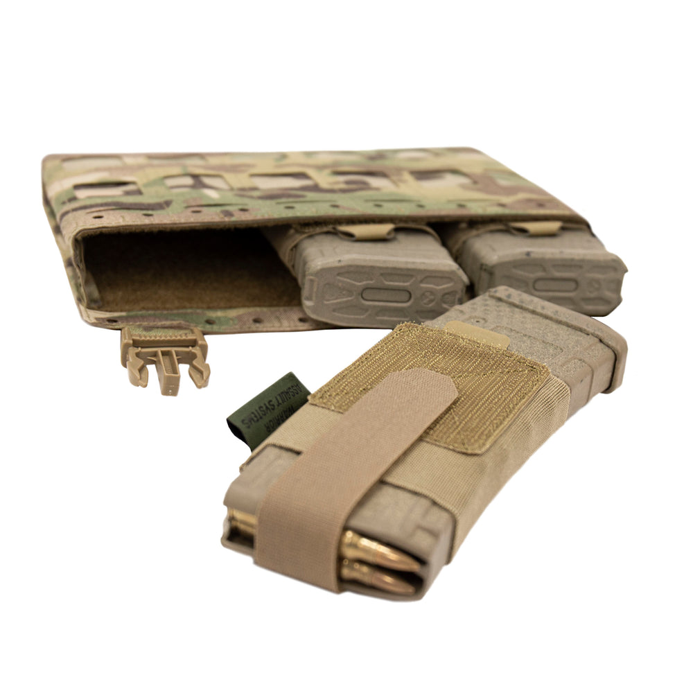 Questo Kangaroo Pouch è progettato per ospitare 3 caricatori 5.56mm, che è la dimensione più comune per molti fucili d’assalto e repliche airsoft. Ogni slot è perfettamente dimensionato per mantenere i caricatori stabili e sicuri durante il movimento, evitando scivolamenti accidentali. La tenuta ottimale assicura che i caricatori siano sempre pronti per l'uso, permettendo una rapida estrazione quando necessario.