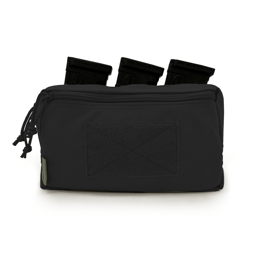 The rear section accommodates 3 x 5.56mm or 3 x 7.62mm x 39mm AK Magazines in Warrior's secure thermoplastic inserts for rapid access. On the front there is a large pouch with 2 zips for general-purpose storage and a wide variety of mission-specific gear, including med kit, navigation aids, gloves, multitools, admin, maps, and crib...