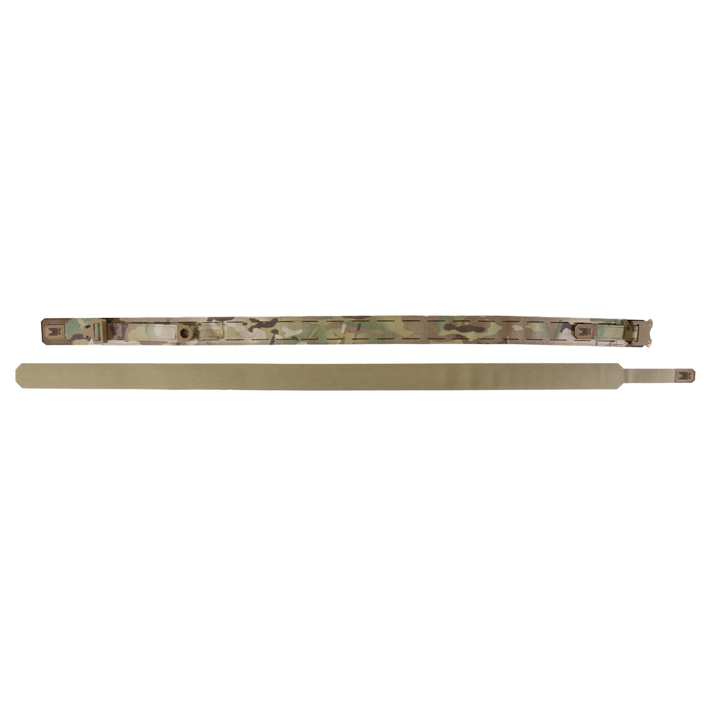 The Fight Light Belt is 45mm high profile and has a series of laser cut horizontal slots for MOLLE attachments, allowing pouches to pass through it, this layer is supported by a 45mm belt made from ultra strong webbing and finished with a 25mm metal Cobra buckle.