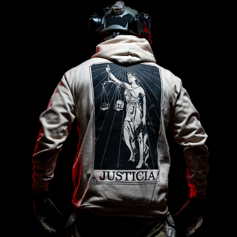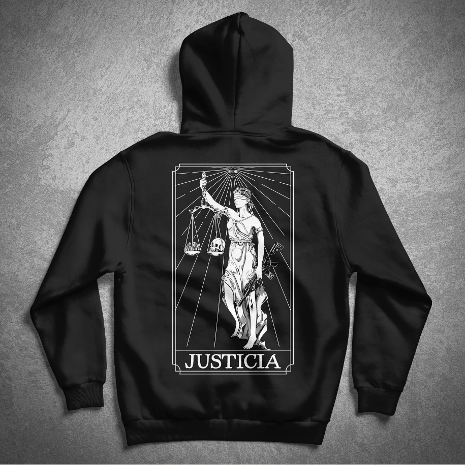 La Brothers in Arms – JUSTICIA Hoodie Black è una felpa con cappuccio pensata per chi cerca stile e comfort. Caratterizzata dalla stampa retro ispirata alla dea della giustizia, questa felpa rappresenta un tributo a chi prende decisioni difficili sul campo.