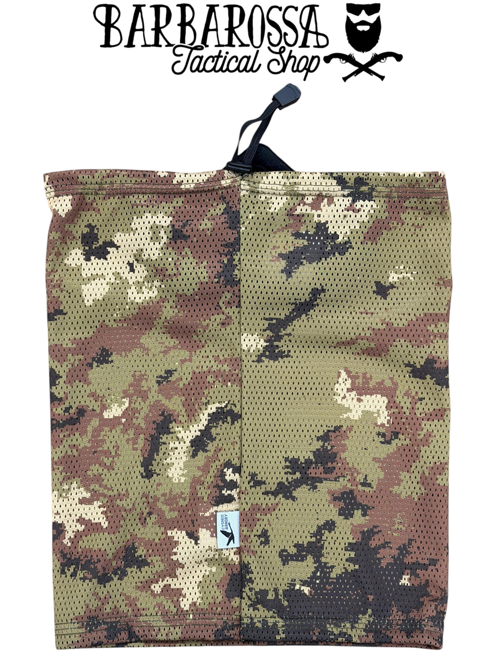 La costruzione della maschera si basa su una griglia in acciaio inox SS304, rivestita in carbonio, che garantisce elevata resistenza all’impatto, ideale per il softair. Il tessuto esterno è 100 % poliestere, leggero e traspirante, progettato per favorire l’aerazione e ridurre l’appannamento degli occhiali o delle protezioni visive.