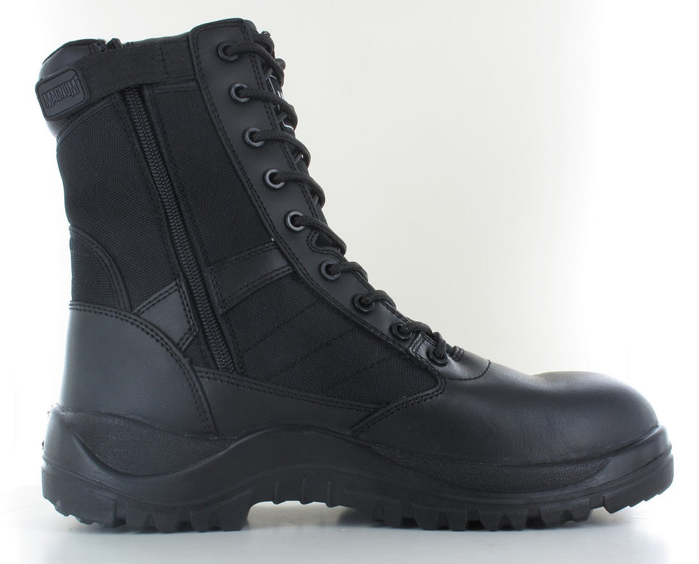 Con un design moderno e funzionale, il Magnum Centurion 8 SZ Black è progettato per affrontare le sfide quotidiane, sia che tu stia attraversando sentieri difficili, affrontando un'operazione di softair o lavorando in ambienti di sicurezza. La costruzione in pelle sintetica e nylon, insieme alla suola antiscivolo, assicura che i tuoi piedi siano protetti e sempre al sicuro, mentre la vestibilità regolabile con chiusura a zip laterale permette di adattarsi perfettamente al tuo piede.
