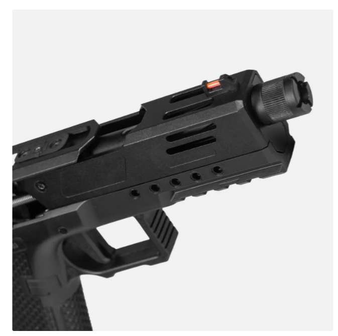 La slide in alluminio CNC pesa meno di 70 g, offrendo rinculo quasi nullo e una ciclaggio rapidissimo. Un sistema ispirato all’SSP5, ottimizzato per prestazioni top della categoria.