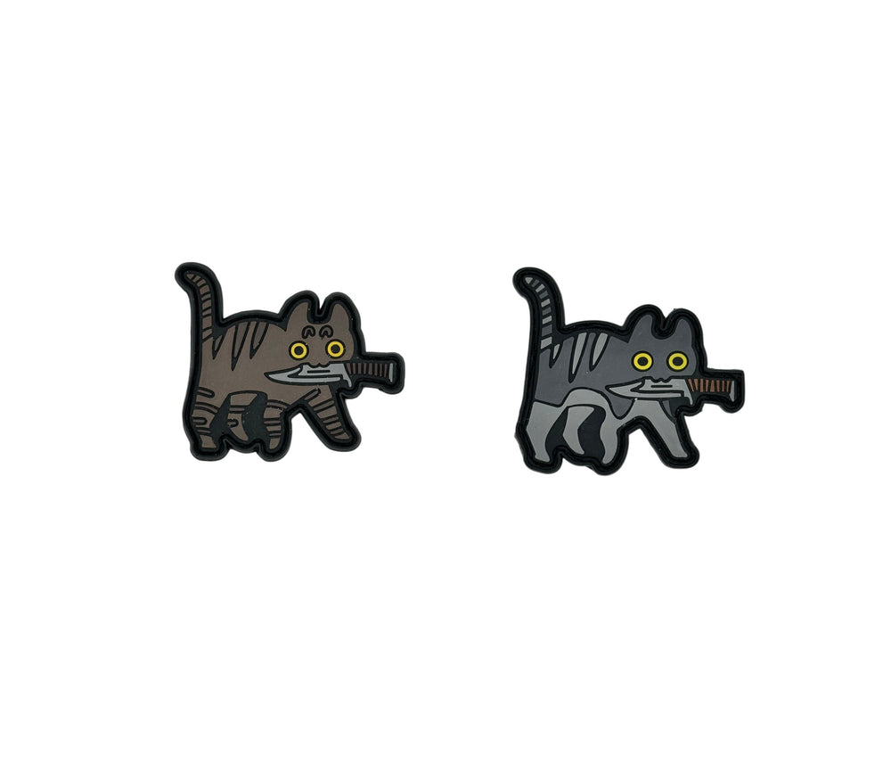 La Patch Cat Knives è realizzata in PVC (gomma morbida ad alta definizione), materiale noto per la sua resistenza all’usura, agli agenti atmosferici e all’abrasione. La finitura è dettagliata, con rilievi nitidi e colori ben contrastati, per offrire una visibilità ottimale anche a distanza.