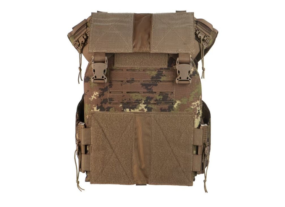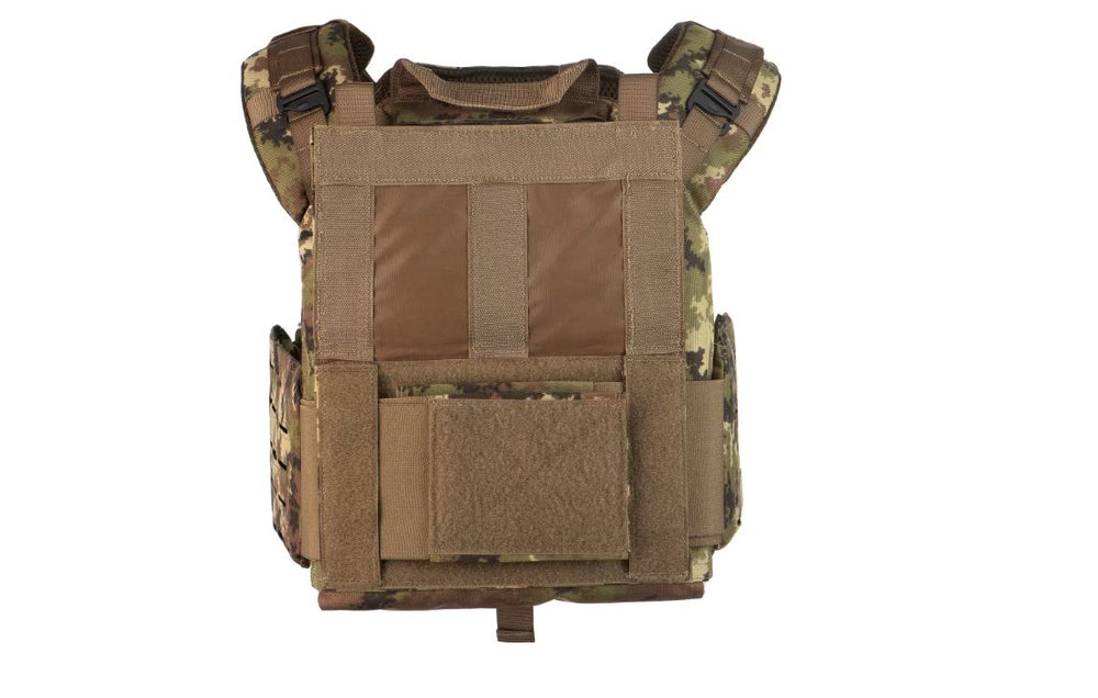 Ogni lato è dotato di tasche integrate per un caricatore o una radio PMR. Il pannello frontale può essere facilmente sostituito grazie a cerchi e passanti + sistema di montaggio a 2 fibbie.