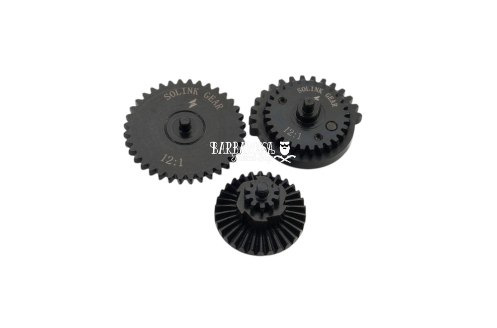 Il Solink High Speed Gear Set 13:1 è un kit di ingranaggi progettato per incrementare la velocità di rotazione del gearbox AEG, ideale per chi cerca un aumento significativo del rate of fire (ROF) senza compromettere l’affidabilità.