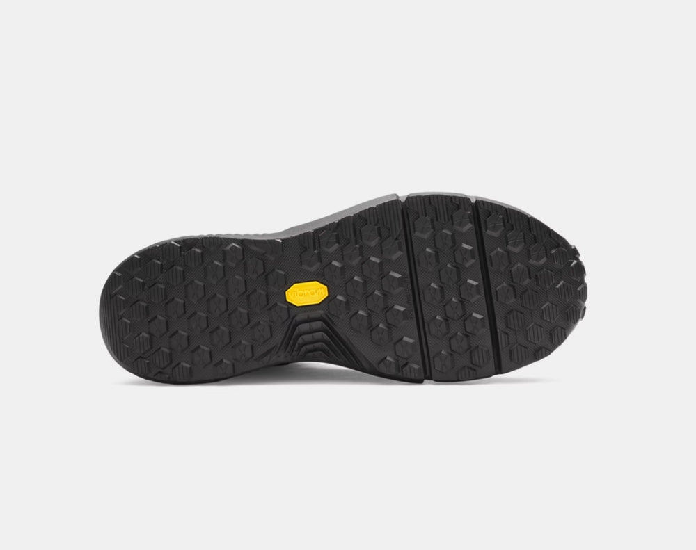 Suola Vibram XS Trek, certificata ASTM F3445‑21 antiscivolo, offre grip affidabile su terreni irregolari e bagnati.