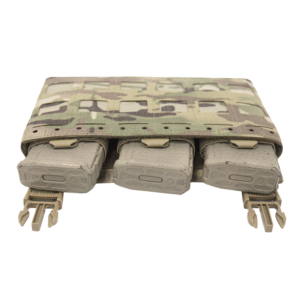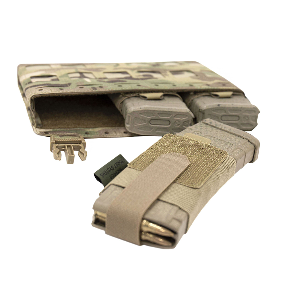Incluso pouch kangaroo staccabile (LC‑DFP‑KP5), capace di ospitare 3 x 5.56 mm o 2 x 7.62 × 51 mm / 9 mm con elastiche rimovibili e chiusura velcro.