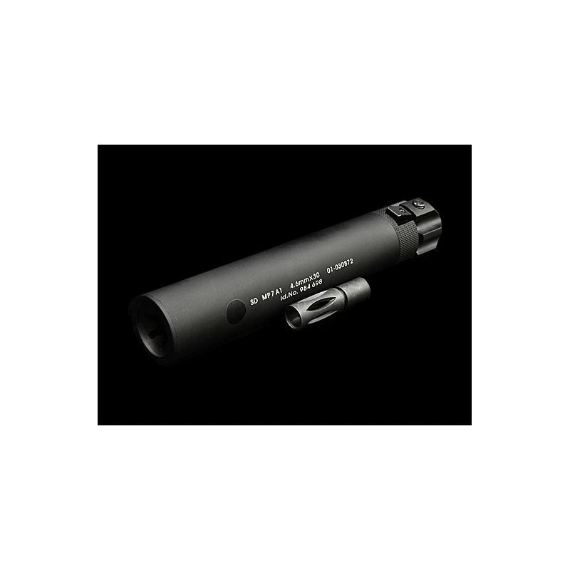 - Quick mount / detach system- Steel Flash Hider included- Built-in inner barrel extension- Silencer Overall Length: 223mm- Silencer Diameter: 38mm- Suitable for VFC MP7A1 GBB SMG