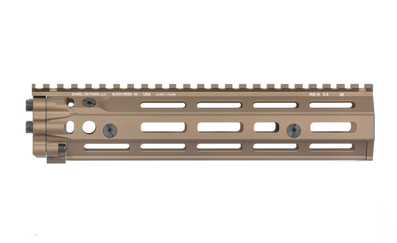 The RIS III 9.5" FDE handguard under the Daniel Defense license in black color (DD) is a rail system designed for AR-15/M4 rifles, known for its excellent durability and precise craftsmanship. Here are the key details about it.