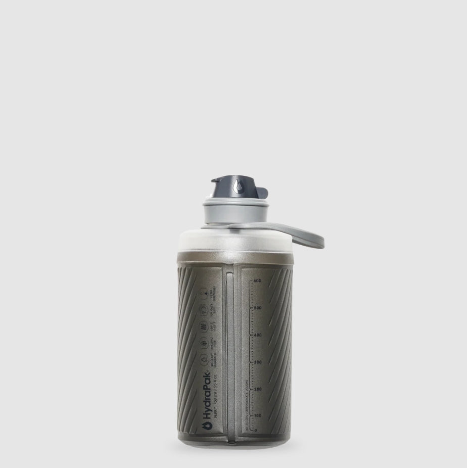 Flexible bottles get an upgrade. The Flux is shaped like a hard bottle, compresses like a softflask, and cuts weight by 50%. Topped with a dust cover and twist-drink nozzle for grab-and-go hydration, plus a bail handle to keep hydration secure in your hand or on your pack. The Flux stands upright like a hard bottle but when you finish your drink, this bottle packs down to pocket size.