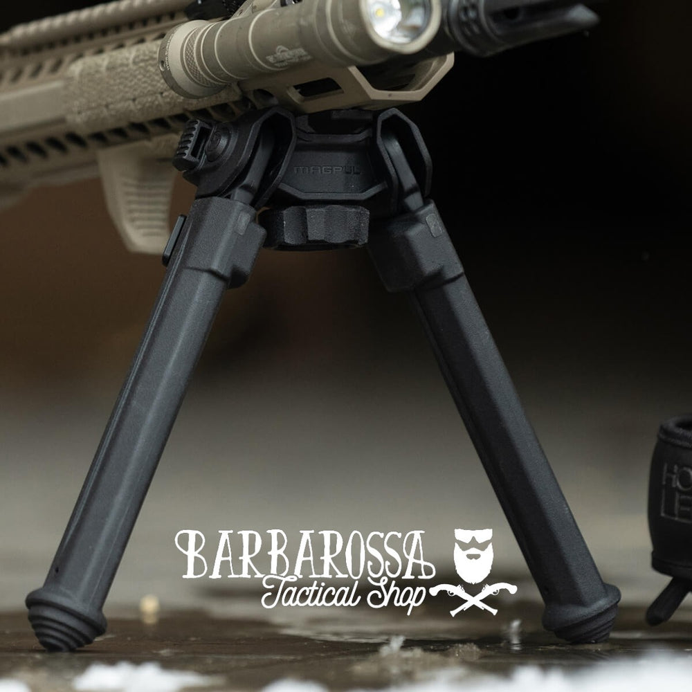 Oltre al metodo di aggancio rapido e semplice, il bipiede è quasi il 40% più leggero di alcuni dei nostri bipiedi esistenti. La struttura stampata a iniezione non si deforma né si rompe sotto pressione e fornisce una piattaforma stabile da cui sparare. La piastra del bipiede, realizzata con lo stesso materiale stampato a iniezione del bipiede stesso, offre una solida superficie di montaggio e presenta due (2) alette M-LOK aggiuntive per favorire il corretto allineamento dopo l'installazione, oltre a una maggiore stabilità e durata durante il rinculo. Il bipiede è inoltre dotato di un perno per cinghia a basso profilo sul retro per consentire il fissaggio della cinghia e facilitare il trasporto dell'arma.