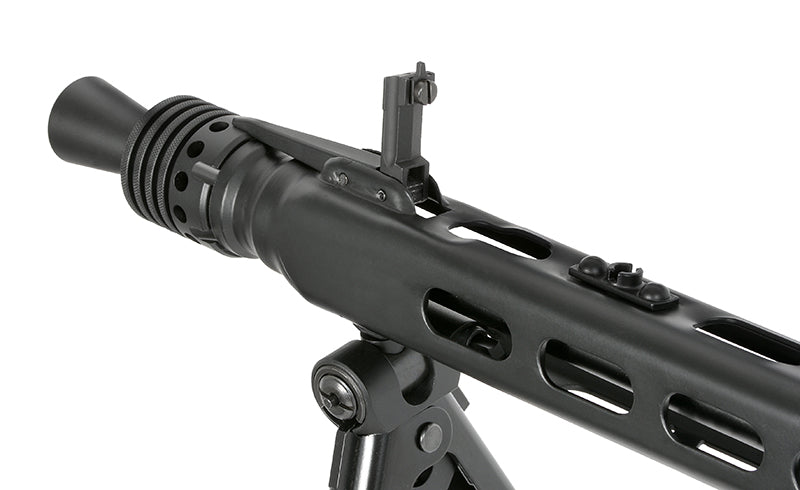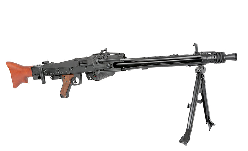 La replica MG42 Full Metal AEG (AGM/S&T/Matrix) riproduce fedelmente il celebre “Hitlerziege” della Seconda Guerra Mondiale. Una leggenda del supporto pesante, oggi utilizzabile in softair, Mil‑Sim e rievocazioni storiche grazie a struttura totalmente in acciaio e alluminio, stock in legno reale e dettagli ottici accurati.