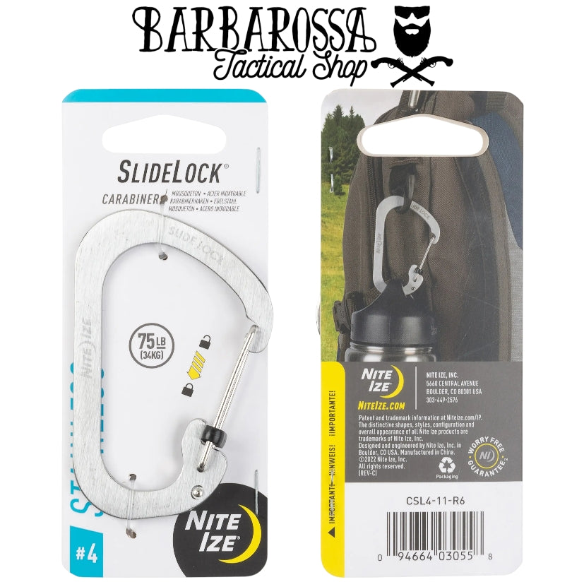 Disponibile in acciaio inossidabile o alluminio colorato, il moschettone SlideLock è disponibile in diverse dimensioni per trasportare un'ampia gamma di oggetti.