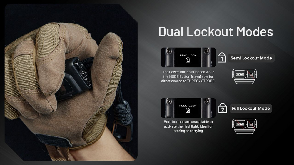 Display OLED: fornisce informazioni in tempo reale sullo stato della torcia