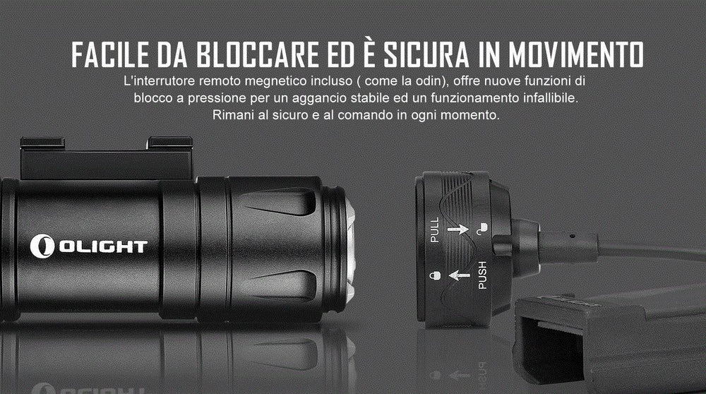 L’interruttore remoto magnetico incluso nella confezione offre un controllo immediato della torcia anche in condizioni dinamiche. Il sistema di blocco a pressione assicura un fissaggio stabile, rendendo l’accessorio perfetto per scenari tattici e d’azione.